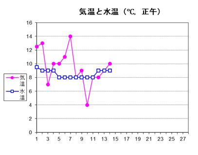 | 気温・水温と釣果の推移 (2026年3月) | |||||||||||||||